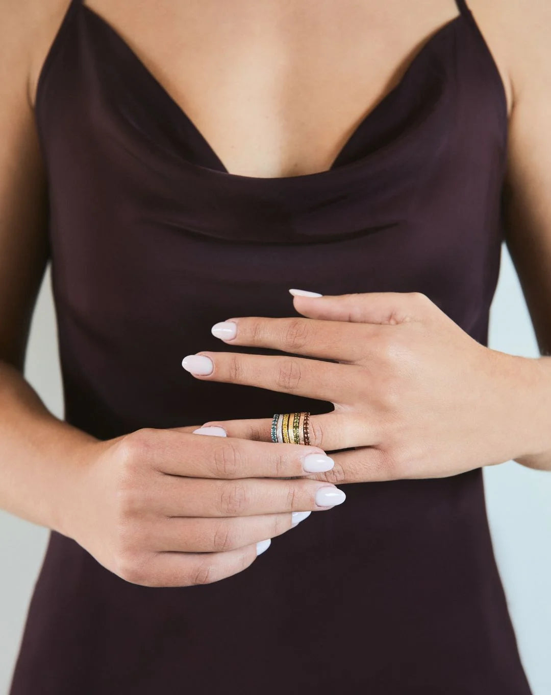 Anillos con gemas: elegantes, simbólicos, fáciles de combinar. Muchos los eligen como autoregalo para cerrar un ciclo y empezar otro con fuerza.