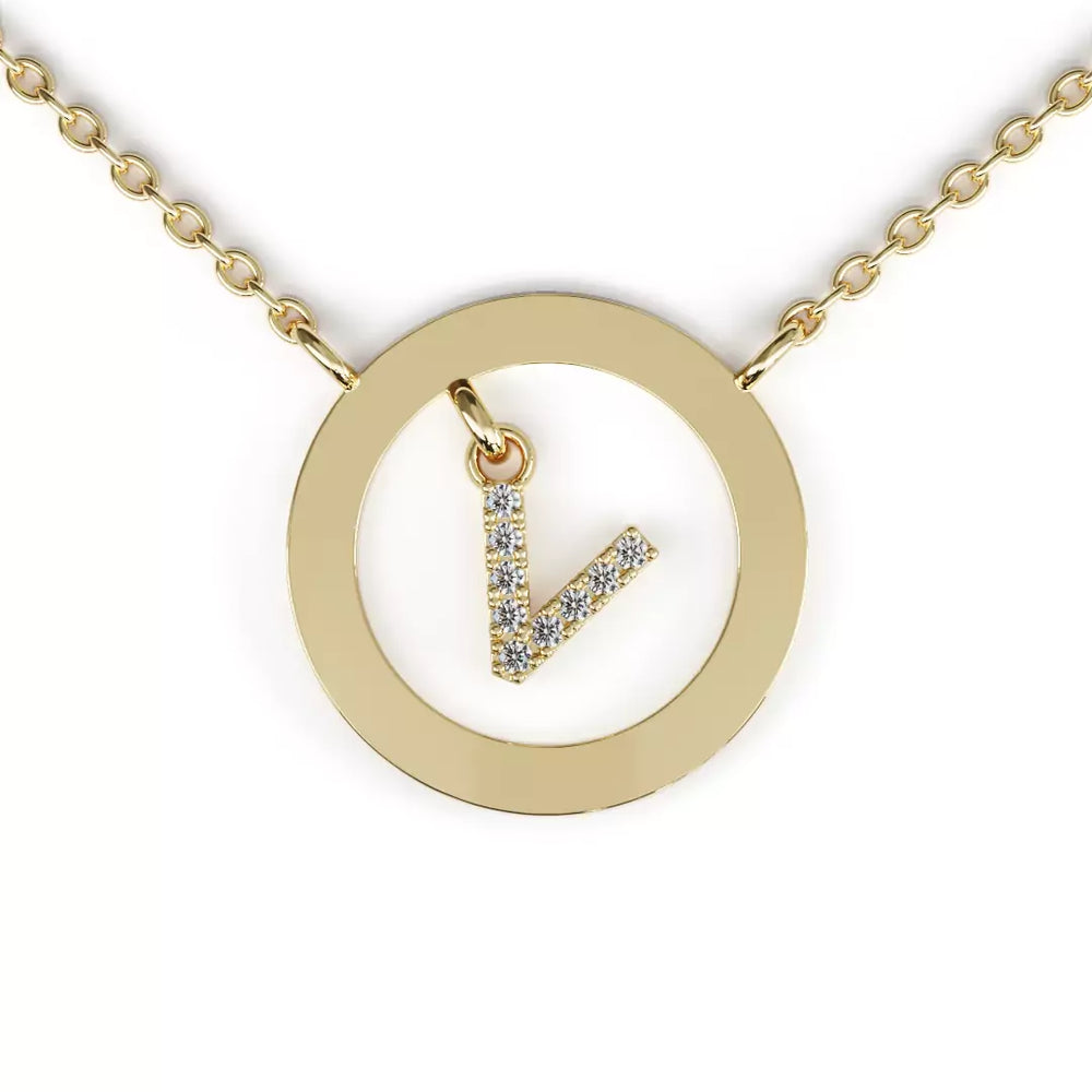 Afegir Collaret cercle d'or amb inicial lletra V de diamants Identity a la cistella