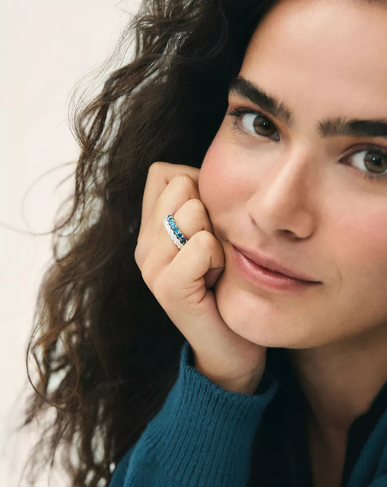 Añadir Anillo corona con zafiro azul y diamantes en oro blanco mate Specials al carrito