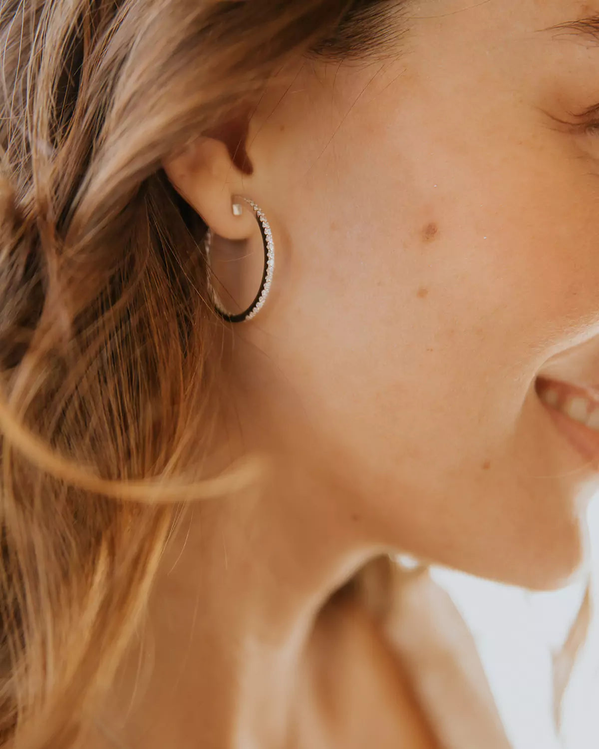 Pendientes de aro con diamantes en oro blanco 2,9 cm Iconic