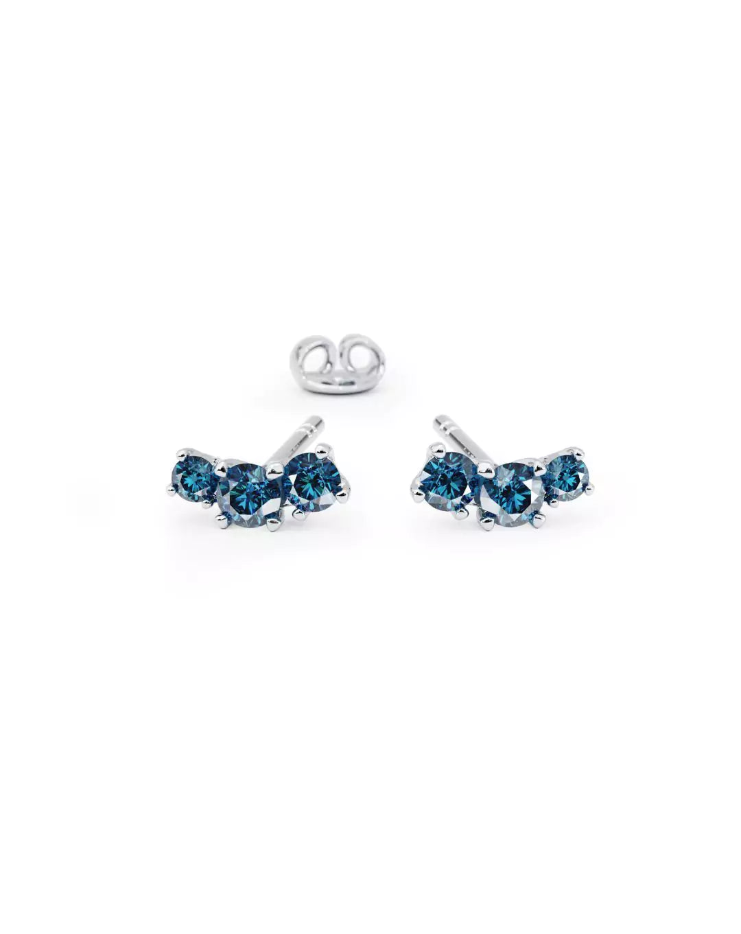 Pendientes de tres diamantes azules en oro blanco 18k Together